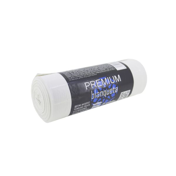 Bolsa de basura de 52 cm x 58 cm blanqueta premiun, para cubo de 30 litros, con sistema antigoteo, tecnología tricapa, alta resistencia, material reciclable (Paquete de 25 unidades).