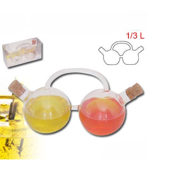 Aceitera / Vinagrera de diseño original con asa y tapones de corcho, modelo Geminis.