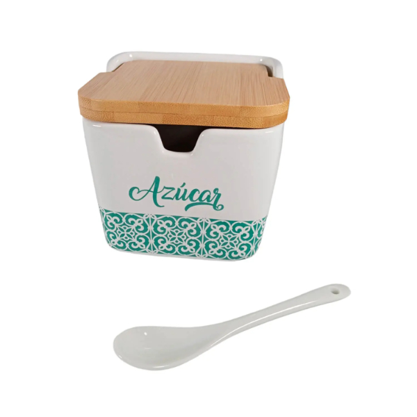 Incluye: 1 Azucarero de cocina de porcelana y 1 Cucharilla de porcelana.