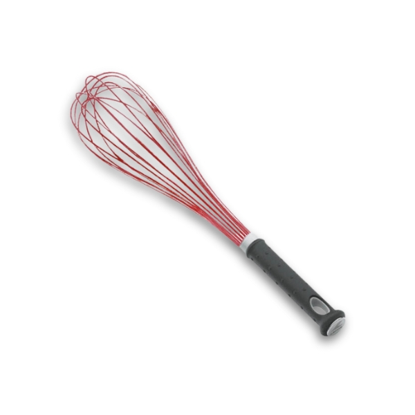 Indeformable, varilla de acero 18/10 recubierta en color rojo. Mango de fibra de vidrio resistente hasta 250ºC. Sirve para batir crema de leche, huevos, claras a punto de nieve, masas ligeras y cremas entre otras.
