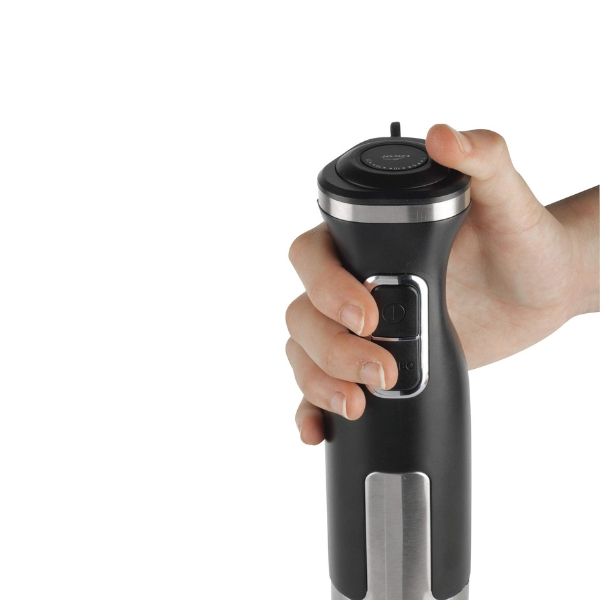Botón turbo para conseguir una potencia máxima con resultados más finos, y regulador de velocidad para regularizar la velocidad de giro de la cuchilla.