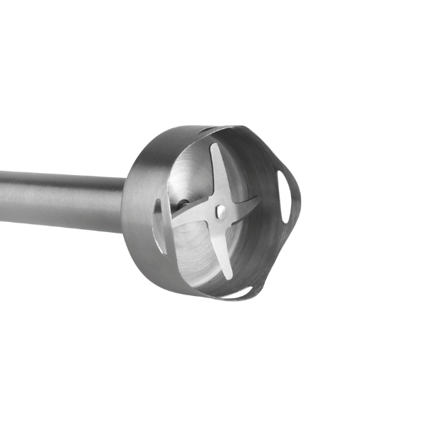 4 cuchillas de Acero Inoxidable 18/10 de gran durabilidad: dos rectas y dos curvas para un óptimo rendimiento.