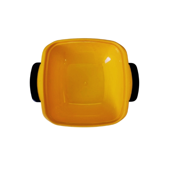 Añade estilo y funcionalidad a tu cocina con este bol de plástico, diseñado con asas negras que proporcionan un agarre cómodo y seguro.