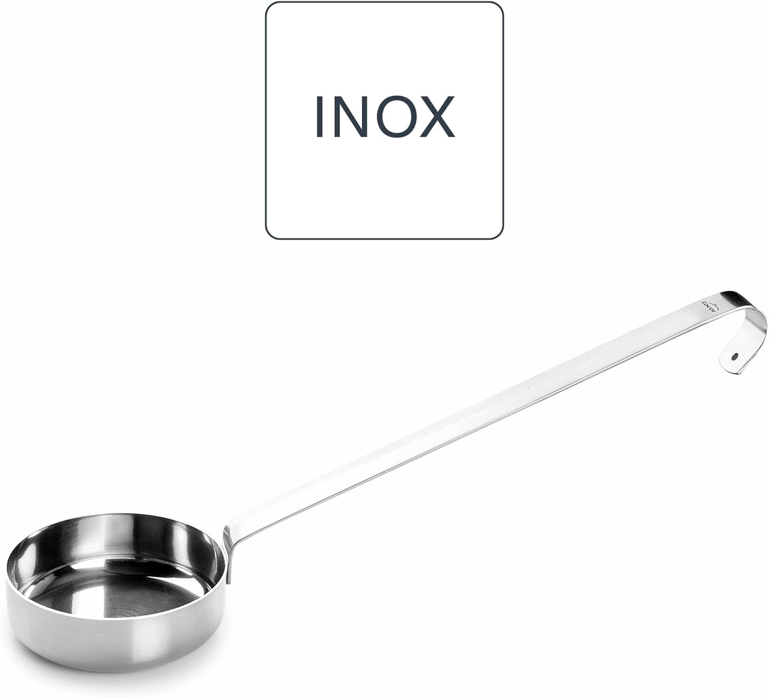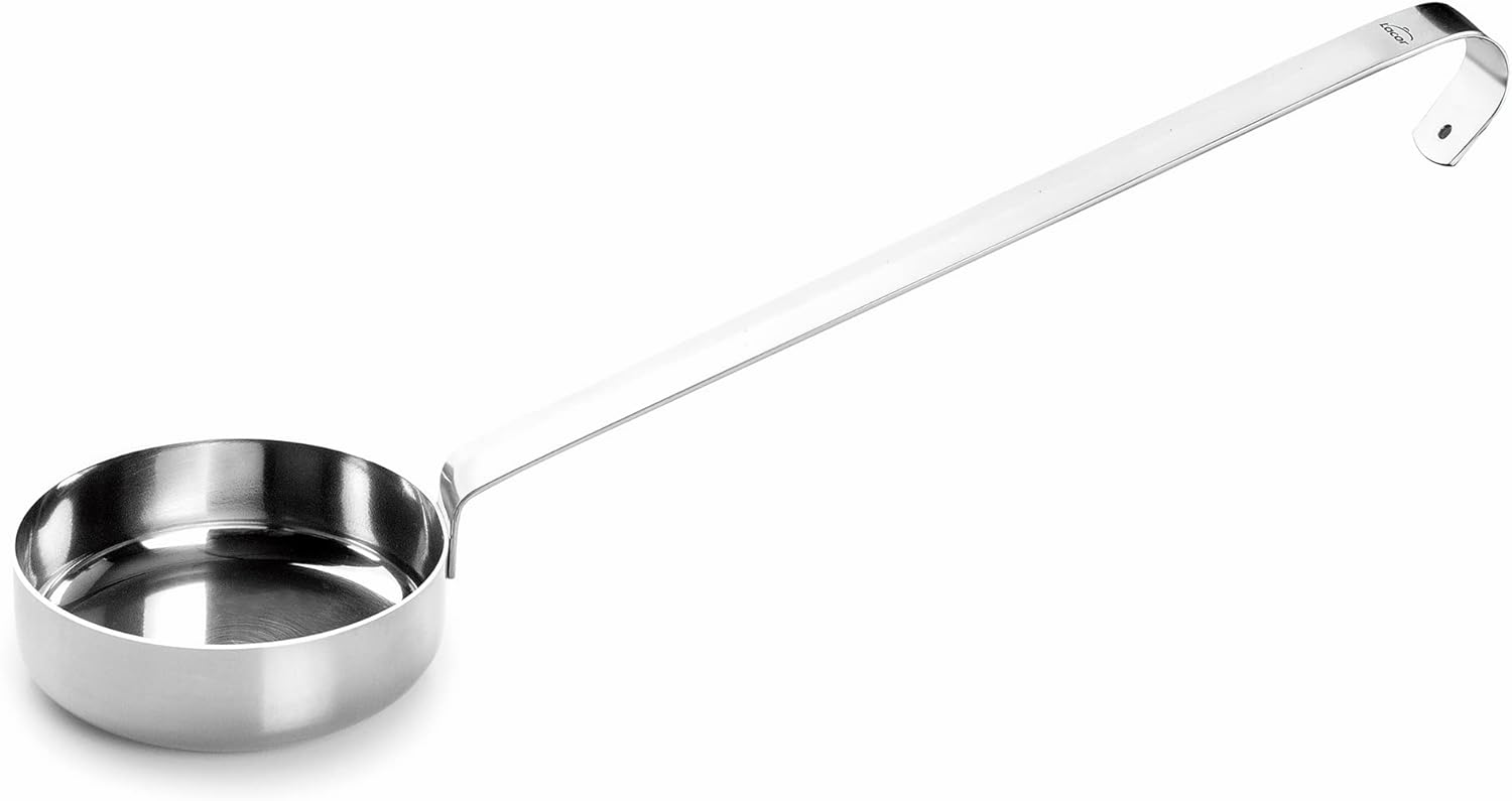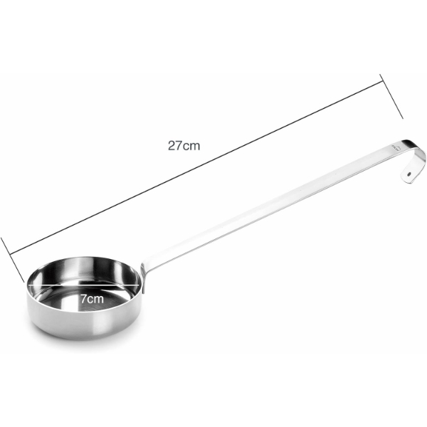 Cacillo de acero inoxidable para salsas. Diseño con fondo plano que permite esparcir la salsa sobre la masa de la pizza. Esencial para la preparación de pizzas.