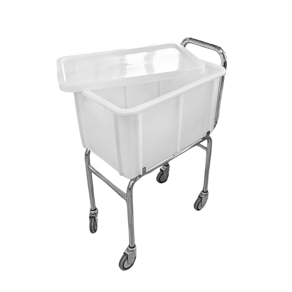 Carro porta vajillas con cubeta apilable.