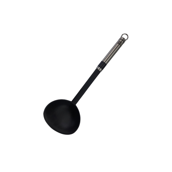 Cazo antiadherente y mango acero inox. con tramo antideslizante y asa para colgar