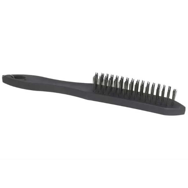 Cepillo barbacoa metal color negro resistente y práctico para la limpieza de parrillas y superficies de barbacoa.