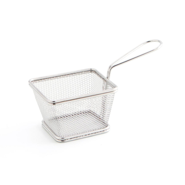 Fabricadas en acero inoxidable de gran resistencia y calidad. Una forma elegante y original de servir toda clase de aperitivos y tapas. La presentación puede ser sobre papel absorbente o bien directamente sobre el cestillo.
