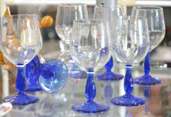 Estuche 3 copas de agua modelo Orion pie azul italiana.