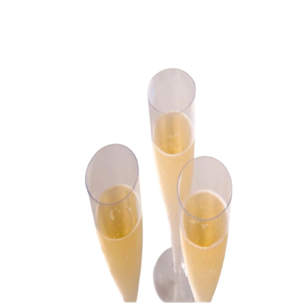 Pack de 6 copas cava champan flauta con pie transparente ideales para un brindis en eventos especiales, nochevieja, navidades, cumpleaños, bodas, comuniones, aniversarios, bautizos o caterings.