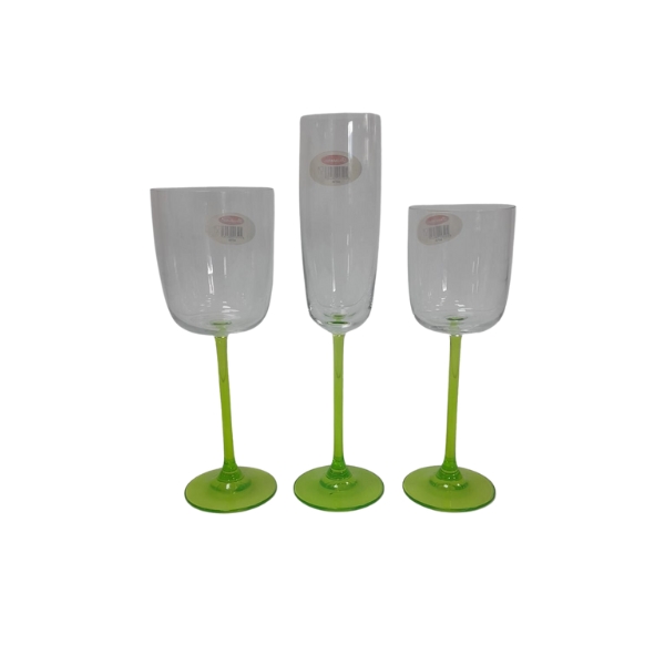 Cristalería de 18 piezas en cristal ahumado pie verde modelo Flamingo