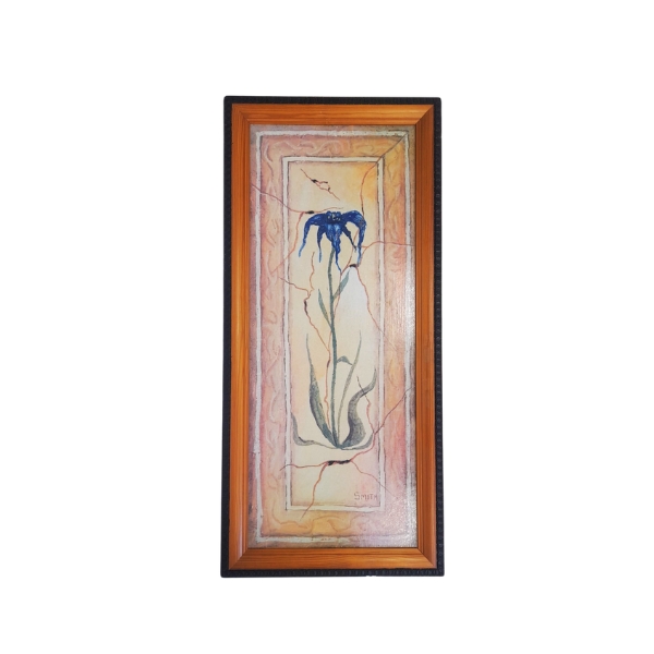 Cuadro lamina marco madera ilustración campanilla china marchita azul