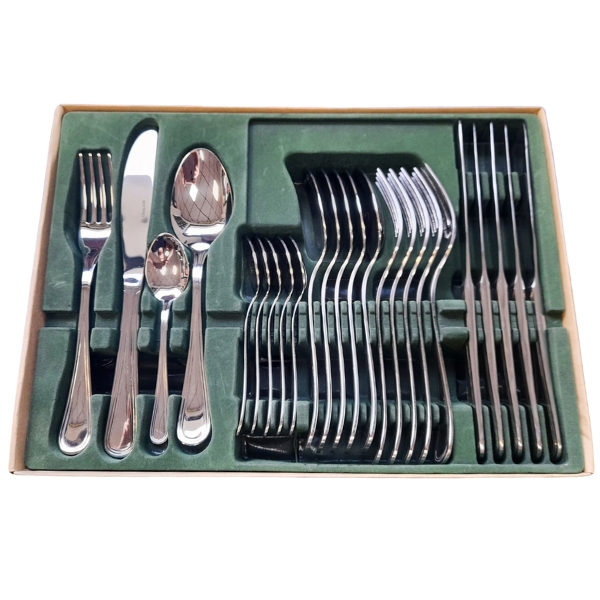 Eleva el nivel de tu mesa con esta cubertería de 24 piezas fabricada en acero inoxidable 18/10 ROSTFREI, una de las mejores calidades del mercado.
