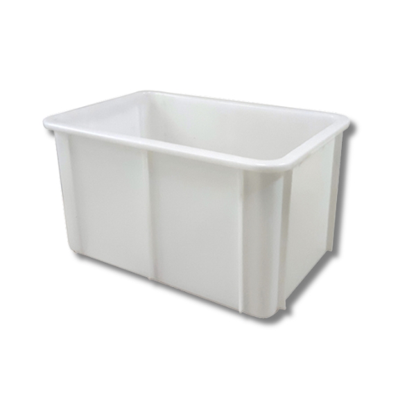 Cubeta de manutención apilable de color Blanco y de material polietileno de alta densidad (HDPE). Idóneos para almacenar, transportar y distribuir a la vez.