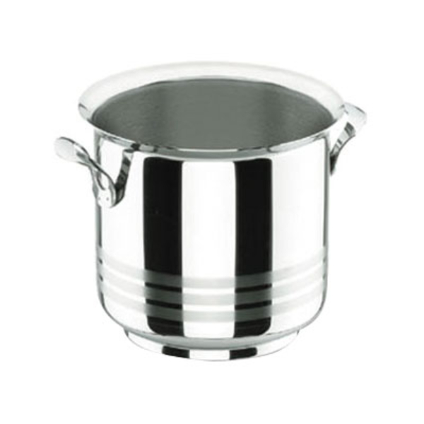 Cubo de hielo – champán enfriabotellas LUXE con asa fabricado en acero inoxidable de diseño clásico y asas de fácil sujeción para mantener el vino a la temperatura adecuada una vez servido en la mesa.