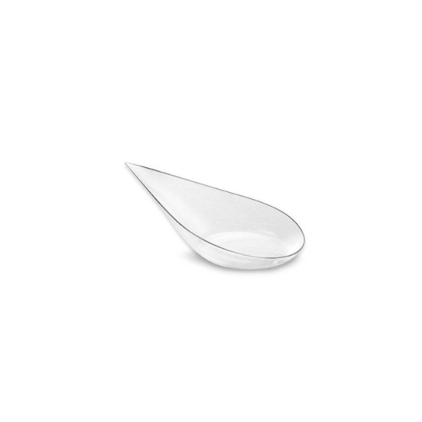Cuchara catering degustación lágrima en plástico transparente desechable, original, prácticas y de alta calidad apta para presentar todo tipo de aperitivos.