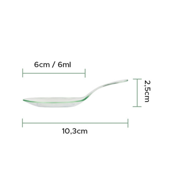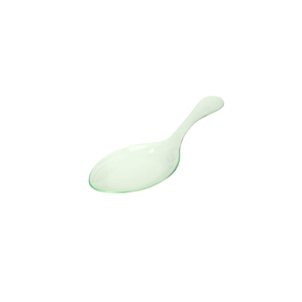 Cucharita especialmente indicada para degustaciones, fabricada en Poliestireno color verde, es perfecta para servir, muy elegantemente, las creaciones gastronómicas más sofisticadas.