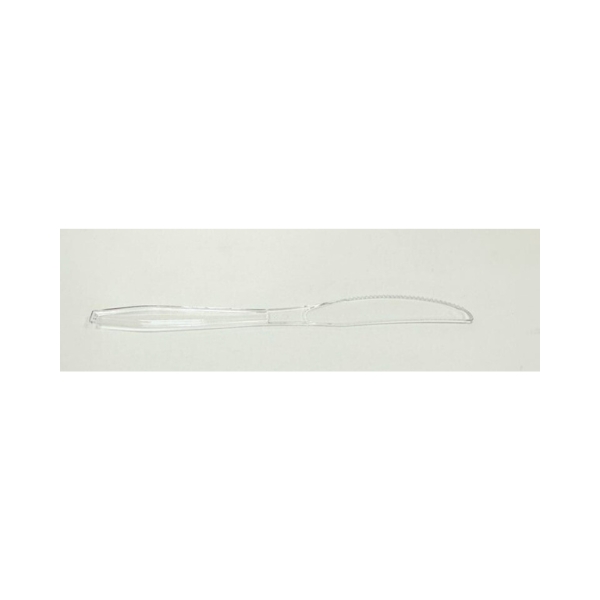 Cuchillos de plástico transparente ideal para fiestas y servicios de hostelería que deseen optar por cubertería desechable apta para reutilización.