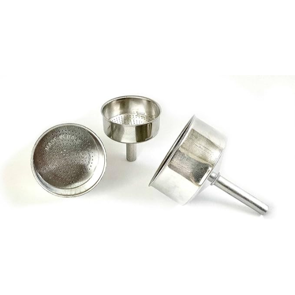 Embudo de aluminio marca Valira para cafetera 3 tazas. (Antigua).