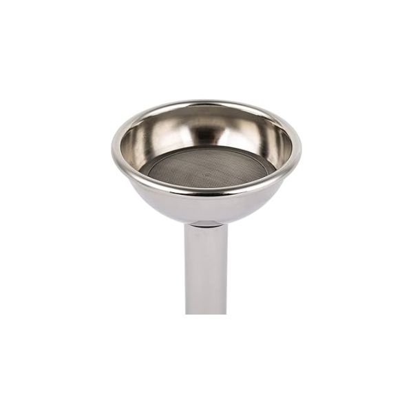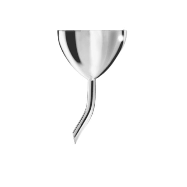 Embudo curvo de vino material acero inox. con filtro, tamaño pequeño.