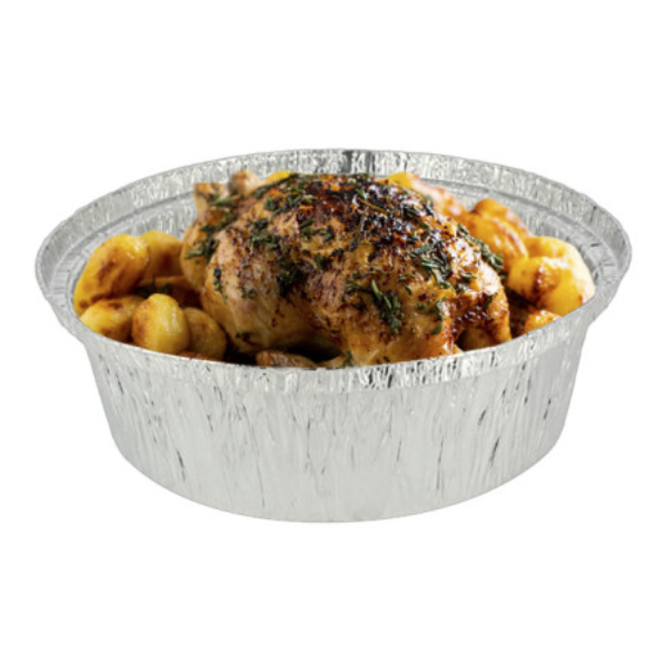 Envase de Aluminio Redondo indicado especialmente para pollos y comida para llevar.