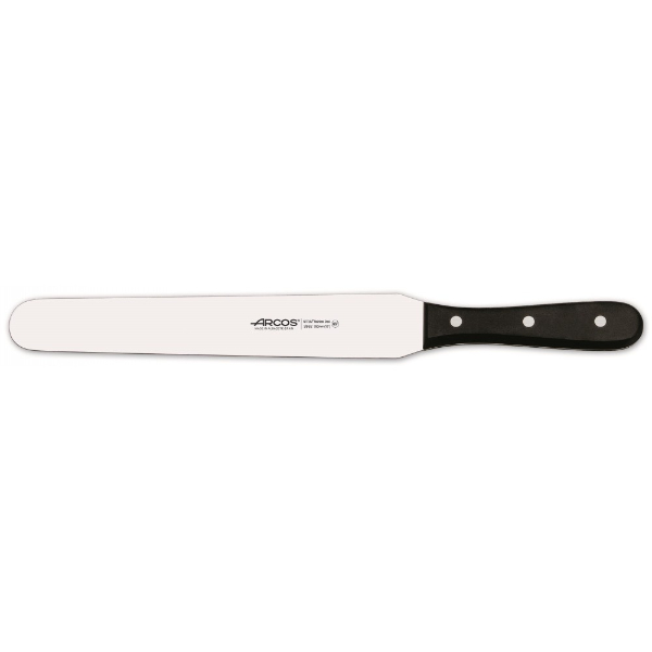 Espátula de pastelero profesional. Acero de alta calidad. Mango negro . La calidad de sus productos es indiscutible. Producción completamente nacional, desde el troquelado o el forjado de las piezas hasta el afilado manual.