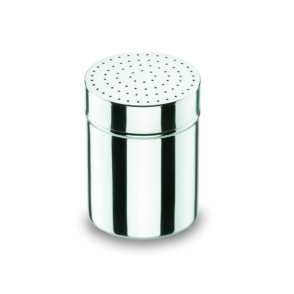 Especiero de cocina con tapa de plástico y agujero fino fabricado en 2 piezas en acero inox. perfecto para trabajos de cocina y repostería.