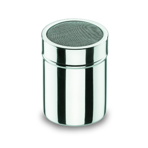 Especiero de acero inoxidable y tapa plástica, su pieza superior esta construida en malla fina perfecta para espolvorear canela o azucar glass ideal para cocina y repostería.