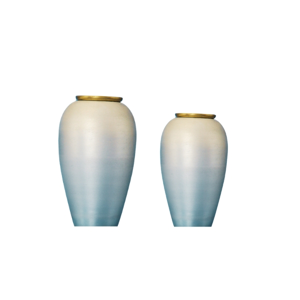 Con un diseño moderno y minimalista, estos floreros combinan acabados en aluminio mate gris y latón, creando un contraste sofisticado que complementa cualquier estilo de decoración.