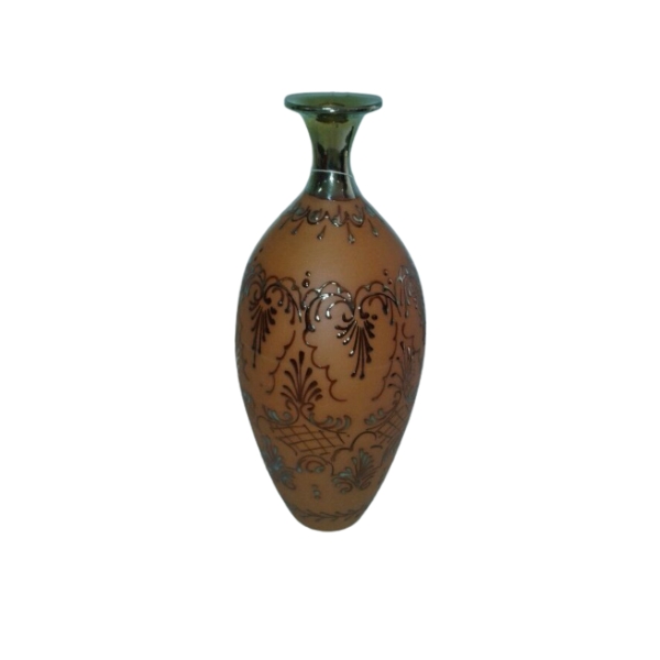 Florero decoración con boca fina terra-oro, rustico.