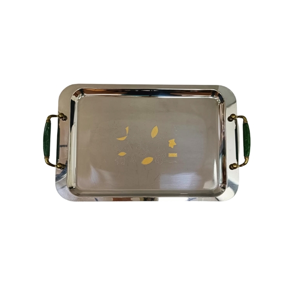Fuente oval o rectangular en acero inoxidable 18/10 con asas decorada en color verde esmeralda.
