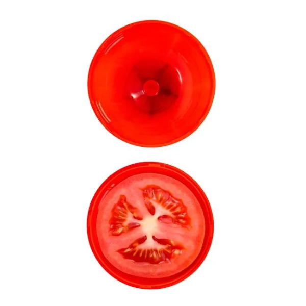 Recipiente guarda-tomates de IBILI fabricado en plástico polipropileno, perfecto para guardar los medios tomates en la nevera y olvidarte de que se sequen o desprendan olores desagradables.