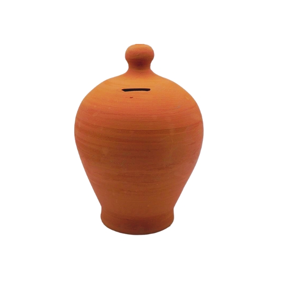 Hucha clásica ideada para almacenar dinero, realizada en barro rojo y con el diseño tradicional utilizado en nuestro pueblo durante décadas, sigue siendo una buena opción de compra en la actualidad.