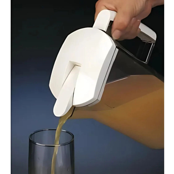 Tiene una capacidad de 2 litros, que junto con su diseño rectangular, no solo ahorra espacio en tu refrigerador, sino que también facilita el vertido sin derrames.