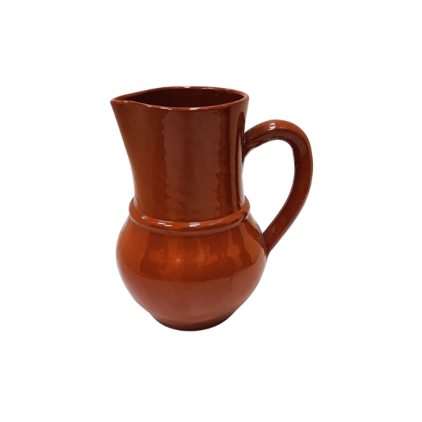 Jarra clasica de barro bombada esmaltada, ideal para vino o agua.