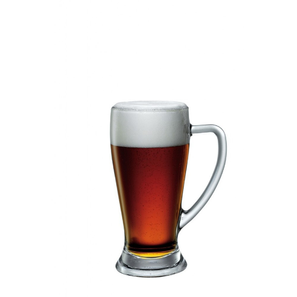 Jarra para cerveza en vidrio transparente con una clara inspiración en las cervecerías alemanas. Máxima resistencia. Apto para lavavajillas.