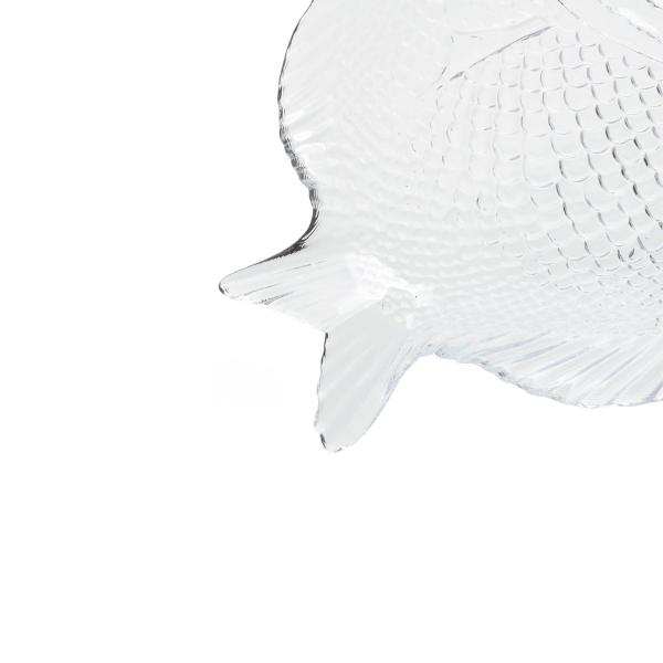 Juego de 6 platos de cristal transparente en forma de pez, perfecto para servir pescado, plato de mariscos, sushi e incluso aperitivos.