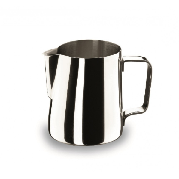 La lechera de 0’35 litros de la casa vasca Lacor es de acero inoxidable 18/10, lo que le aporta resistencia, aparte de ser un material muy limpio.