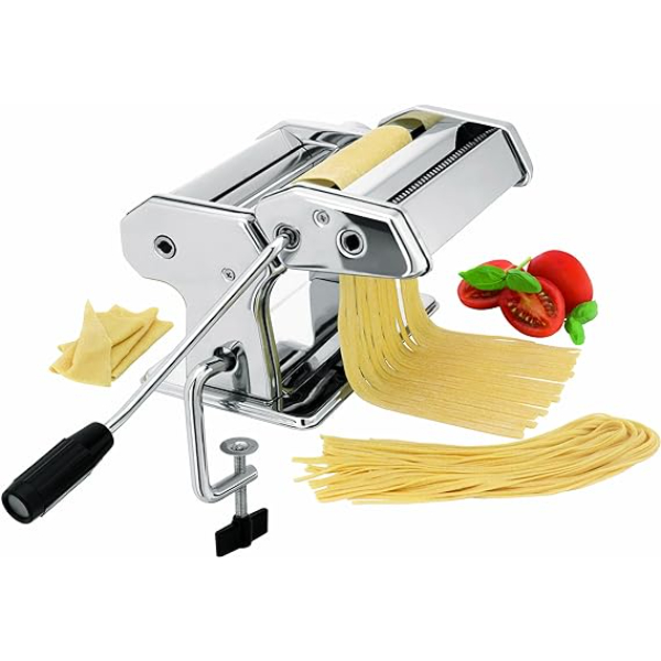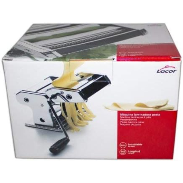 Máquina laminadora manual para hacer pasta fabricada en acero inoxidable.