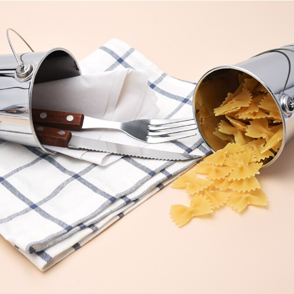 Dale un toque original y moderno a tu mesa con este mini cubo de presentación en acero inoxidable.