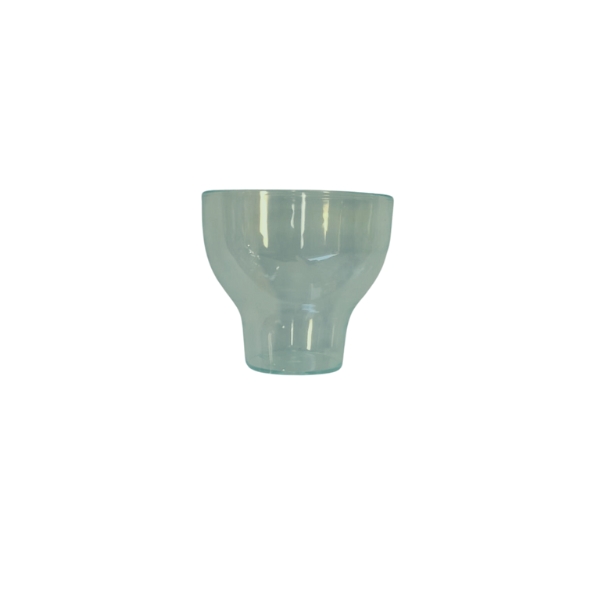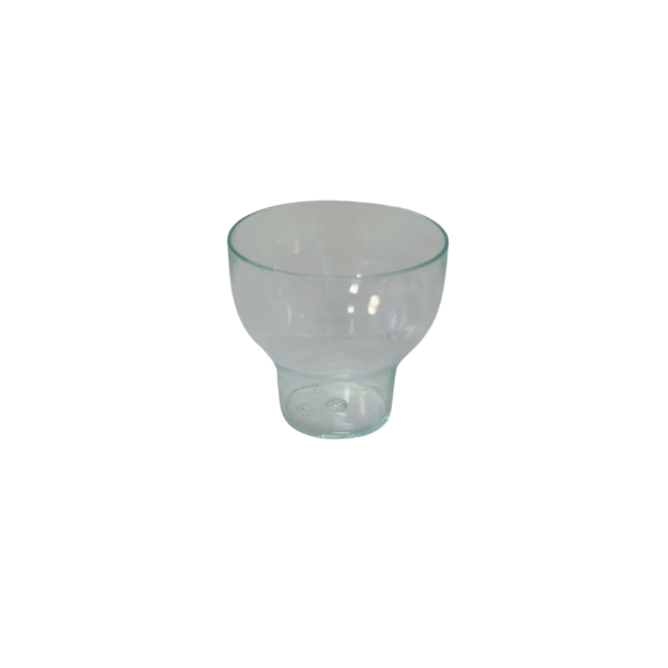 Mini vaso en forma de tulipa fabricado en plastico PS transparente color verdoso, perfecto para degustaciones, aperitivos, licores y catering como postres, etc.