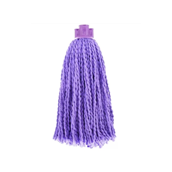 Mocho de fregona de microfibra ecológica de hilos color lila de última tecnología que permite la limpieza solo con agua y así protege el medio ambiente, ahorra dinero y esfuerzo.