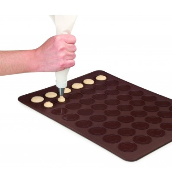 Esta moldeado en ambas caras para dos medidas diferentes (30 macarons de 5 cm ó 45 macarons de 4 cm).