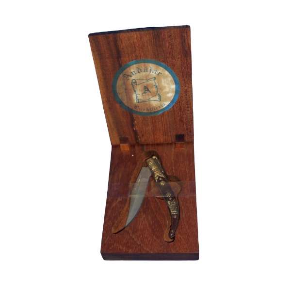 Preciosa navaja Andujar de España, en estuche de madera oscura.
