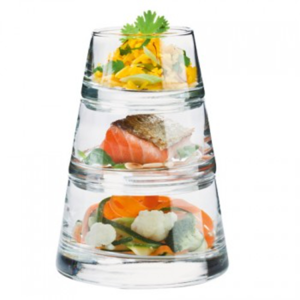 Pack de 3 piezas cristal apilable para servir aperitivos , golosinas, bonito para decorar la mesa en forma de pirámide.