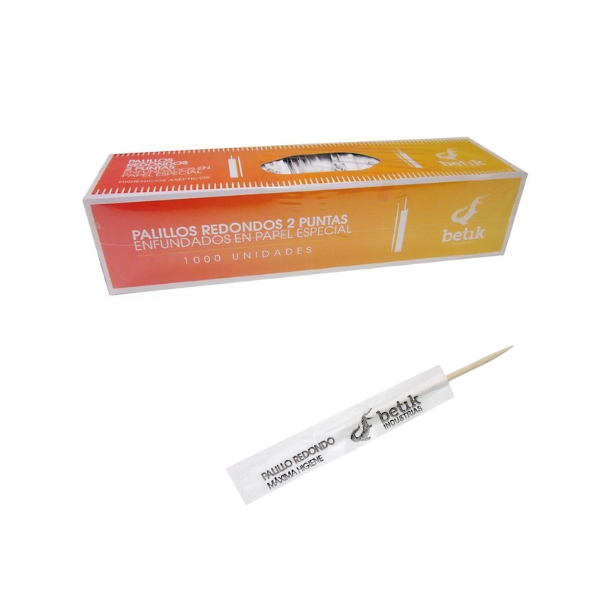 Palillos de dientes higiénicos redondos de dos puntas, enfundado en papel especial, especialmente diseñados para la hostelería y restauración.