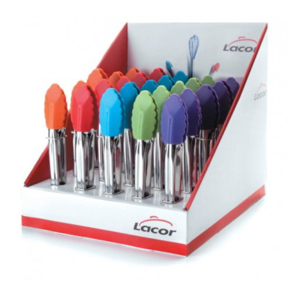 Pinza Hecha de silicona color rojo y mango de acero inoxidable, ideales para cocinar o para repostería.