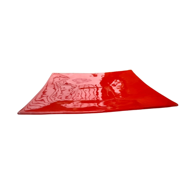 Dale un toque vibrante y sofisticado a tu mesa con este elegante plato cuadrado de cristal rojo.