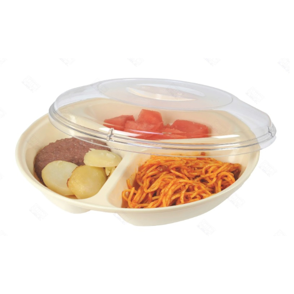 Fabricado en policarbonato color blanco y con altura 40mm (diámetro 255m) es perfecto para comedores colectivos.