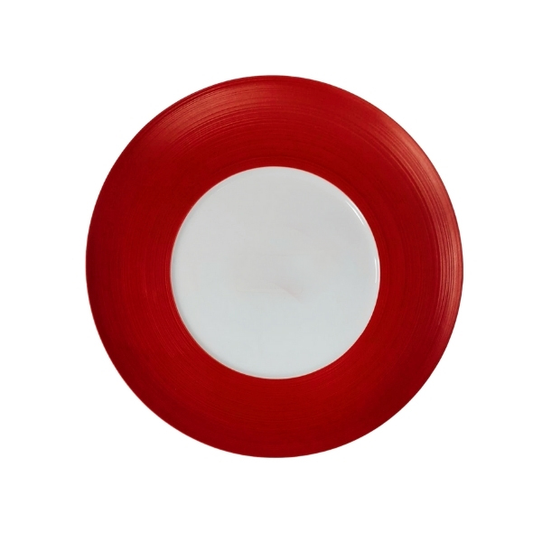 Plato porcelana blanca y combiando color rojo rallado diametro 31 cm modelo Nilo.
